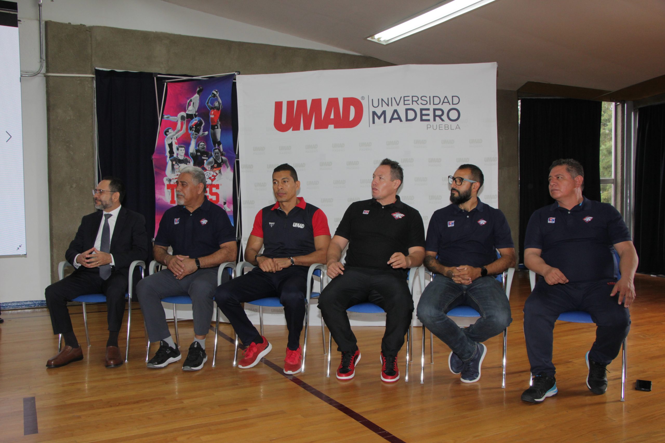 Con la presencia del maestro Alain Serrano, Vicerrector de Servicios y Tecnología de UMAD, el coach Guerrero Carreón, coordinador general de Deportes, y los entrenadores Juan Manuel Solano, Juan Pablo Bravo, Alfredo Jiménez y Víctor Manuel Badillo, titulares de los conjuntos de basquetbol varonil, basquetbol femenil, futbol soccer y voleibol varonil y femenil, respectivamente, la Universidad Madero presentó a sus equipos representativos, mismos que, a partir de este mes, competirán en organismos como la Liga de la Asociación de Basquetbol Estudiantil y Comisión Nacional Deportiva Estudiantil de Instituciones Privadas.
